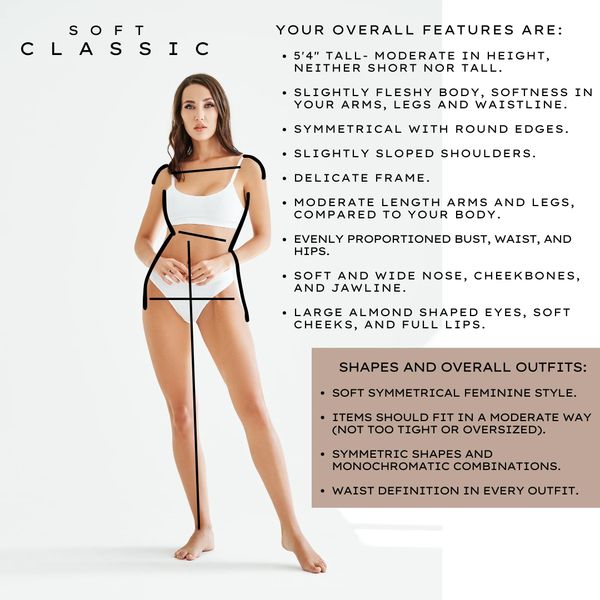 Having studied several body shape systems, I personally find the Kibbe Body System to be the most interesting and broadly inclusive of all body types. It has great merit, the best of which is how it isn’t corrective in nature. It is also one of the only systems where your body type does not change because of weight gain or loss. It actually has nothing to do with one’s weight at all. Your natural features and bone structure are the most deciding factors. It teaches one to view their bodies holistically and lean into and highlight what they naturally have!
